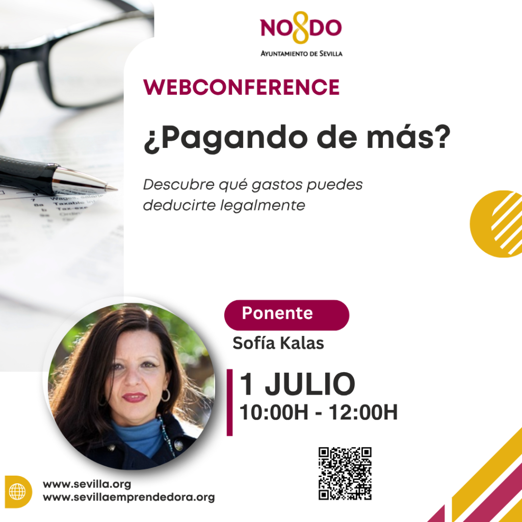 El martes 8 se imparte de 9:00 a 14:00 por vía online una sesión formativa sobre ‘Nociones básicas en materia de fiscalidad’ para pymes y para personas emprendedoras. Puedes optar esa tarde por acudir a las 16:00 a la sede de Sevilla Emprendedora, para conocer los recursos gratuitos que se ofrecen con el fin de apoyar a quienes emprenden.