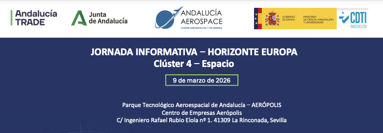 La jornada está organizada por Andalucía Trade y cuenta con la colaboración de Clúster Andalucía Aerospace, INTA, Aerópolis, CDTI, Red Enterprise Europe Network (EEN), Red OTRI Andalucía, Euraxess y Red PIDI.